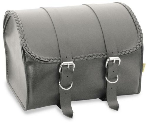 Synthetic black leather with braided accents - same styling as the rest of the Braided collection Quick release buckles Attaches to most sissy bars with easy-to-use 2``-wide hook-and-loop straps Four lace points for securing to luggage rack- laces included 13`` W x 10`` H x 9 1/2`` D Made in the U.S.A. Photo`s are for reference only. Please read item title carefully.